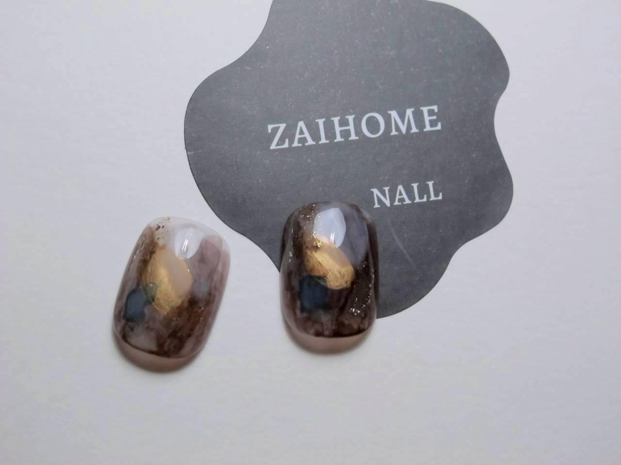 現貨 | 隔日到貨【敦煌-26】新短方 秋冬美拉德焦糖 金屬大理石 暈染復藍金穿戴甲 純手工穿戴甲